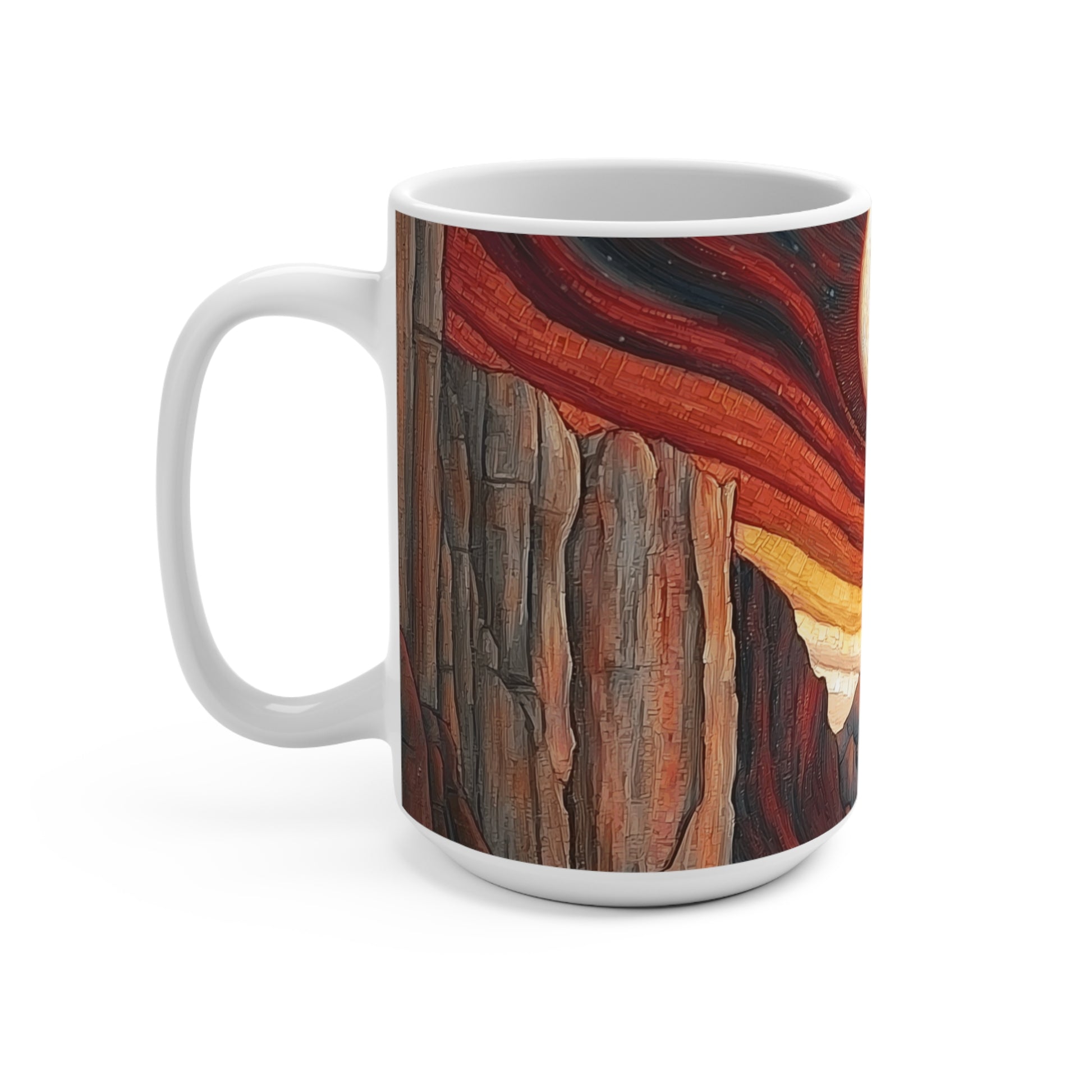 Embrace your love for nature with this stunning ceramic mug. Perfect for your morning coffee or evening tea, this 15oz mug showcases a beautifully crafted landscape design that evokes a sense of tranquility and wonder. Its eye-catching artwork brings a warm and vibrant atmosphere to any kitchen or office space, making it a delightful addition to your daily routine. Ideal for gift-giving, this mug is perfect for nature enthusiasts, artists, or anyone who appreciates unique home decor. Celebrate special occasions such as birthdays, housewarmings, or holidays with a thoughtful gift that’s sure to brighten someone’s day.