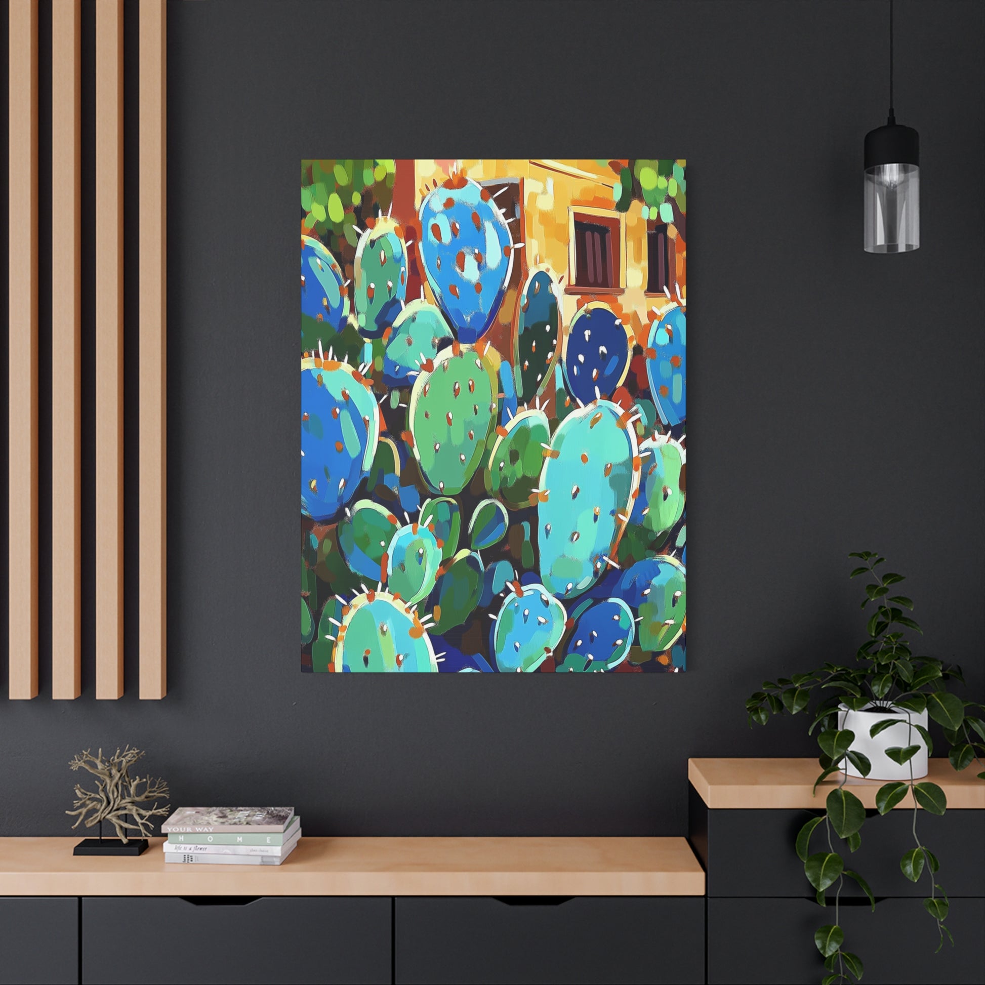 Transform your space with 'My Blue Cacti' canvas print. The calming blue hues and unique cactus design bring a touch of nature indoors. Perfect for nature lovers and those looking to add a pop of color to their living or workspace. Ideal for home decor, office spaces, and gifting on occasions like birthdays, housewarmings, or holidays.