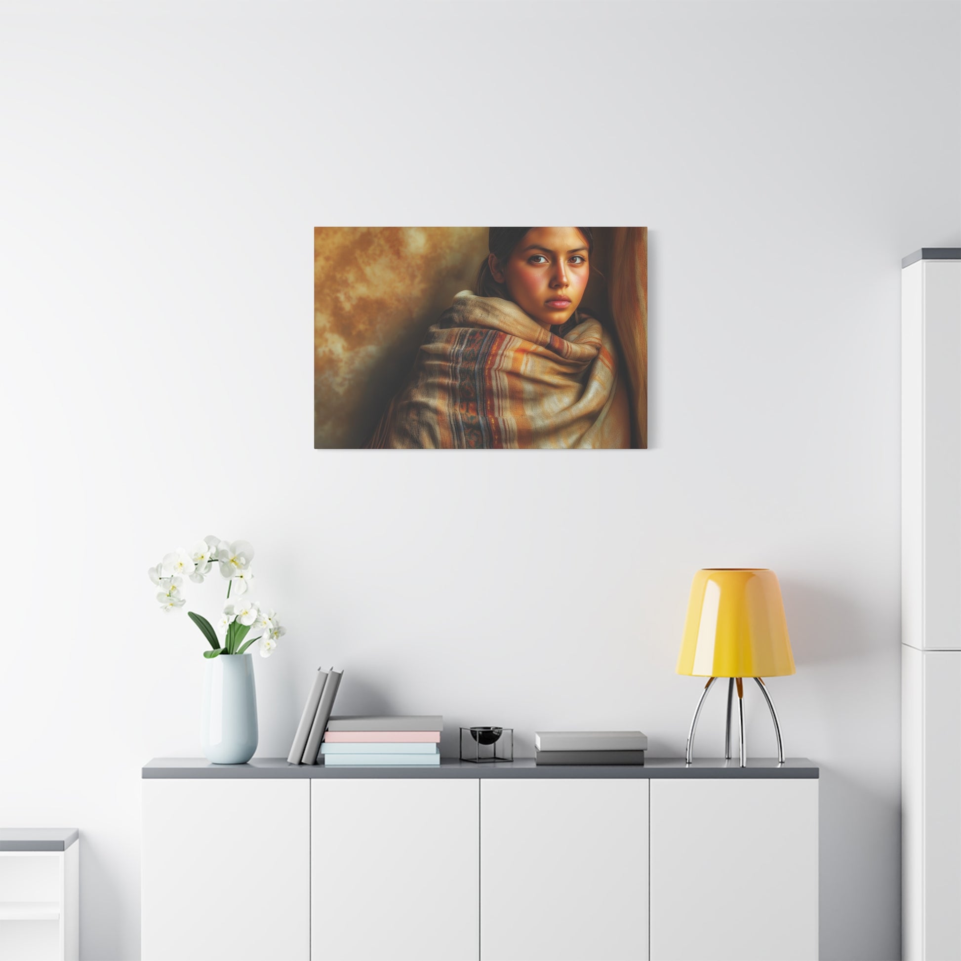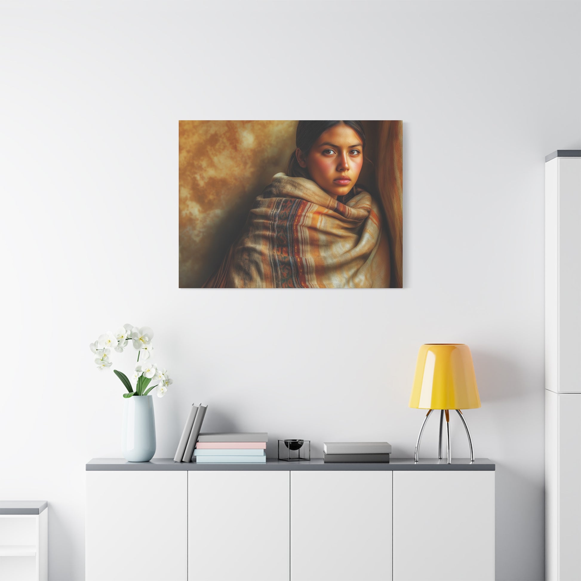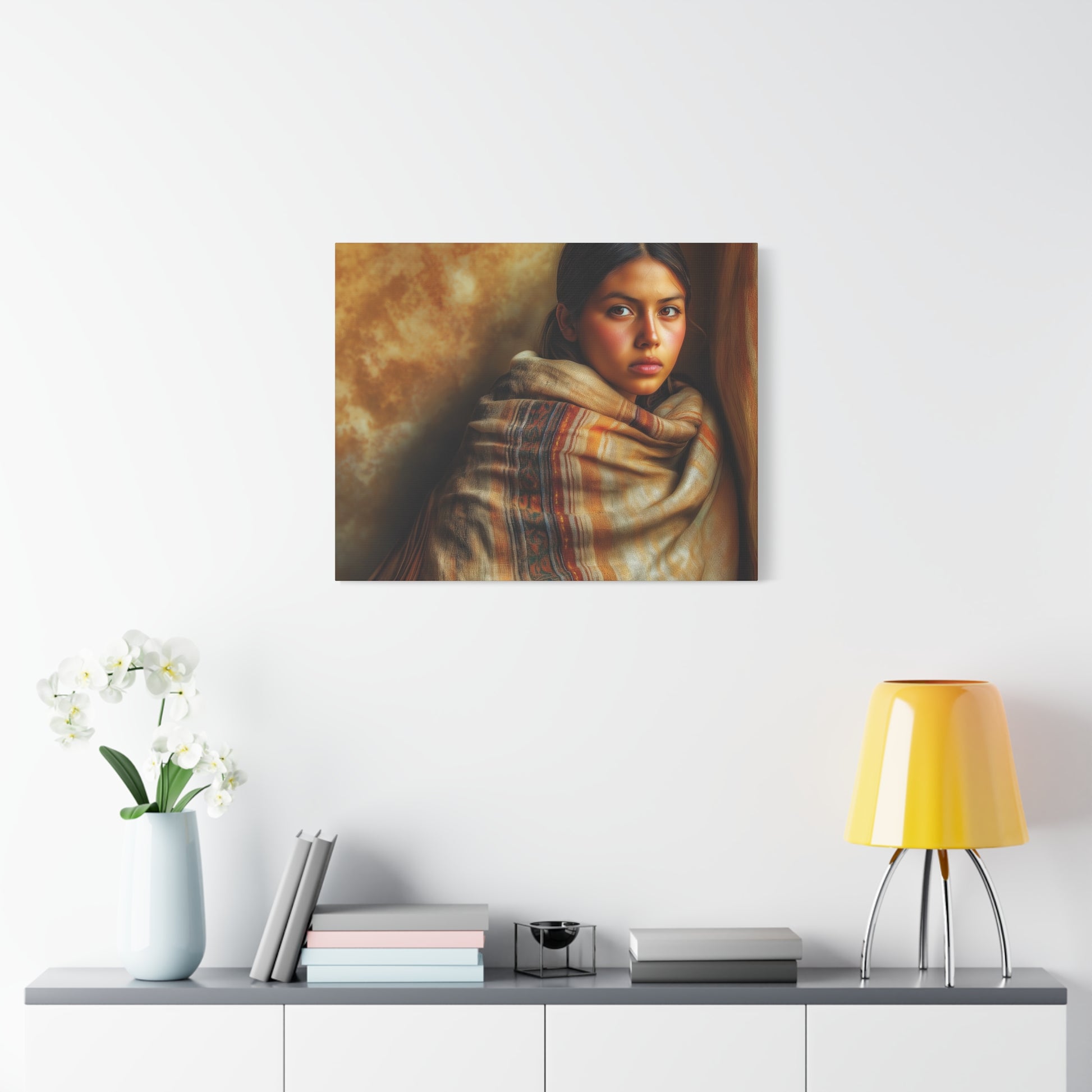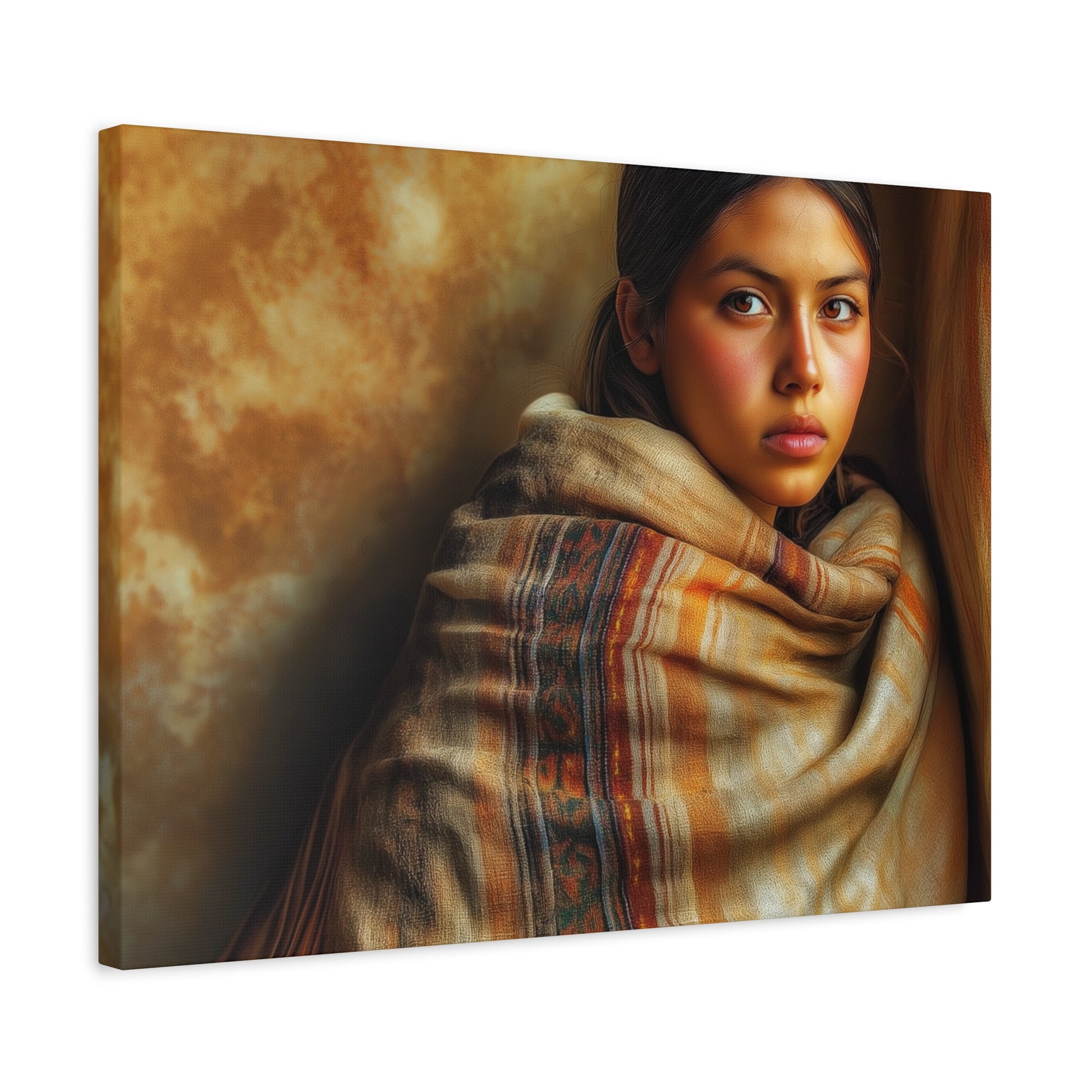 The 'Taos Girl' canvas print exudes a rustic and southwestern charm, perfect for those who love desert-inspired decor. This piece can bring a warm and earthy vibe to any space, making it ideal for bohemian or eclectic home styles. Suitable for those celebrating Southwestern holidays or simply looking to add a touch of desert beauty to their surroundings.