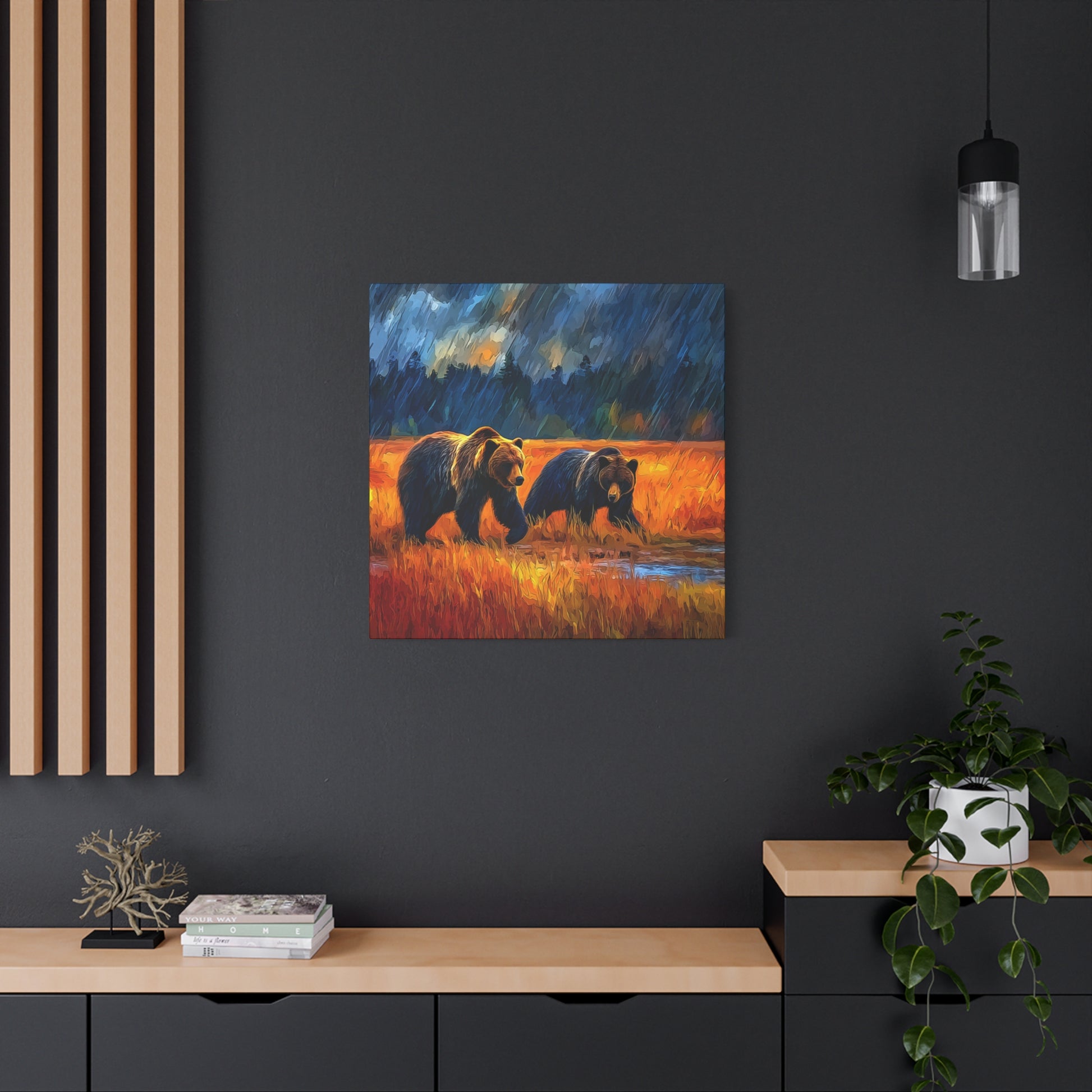 Canvas Print - Travelin Bears Two in Stormy Weather