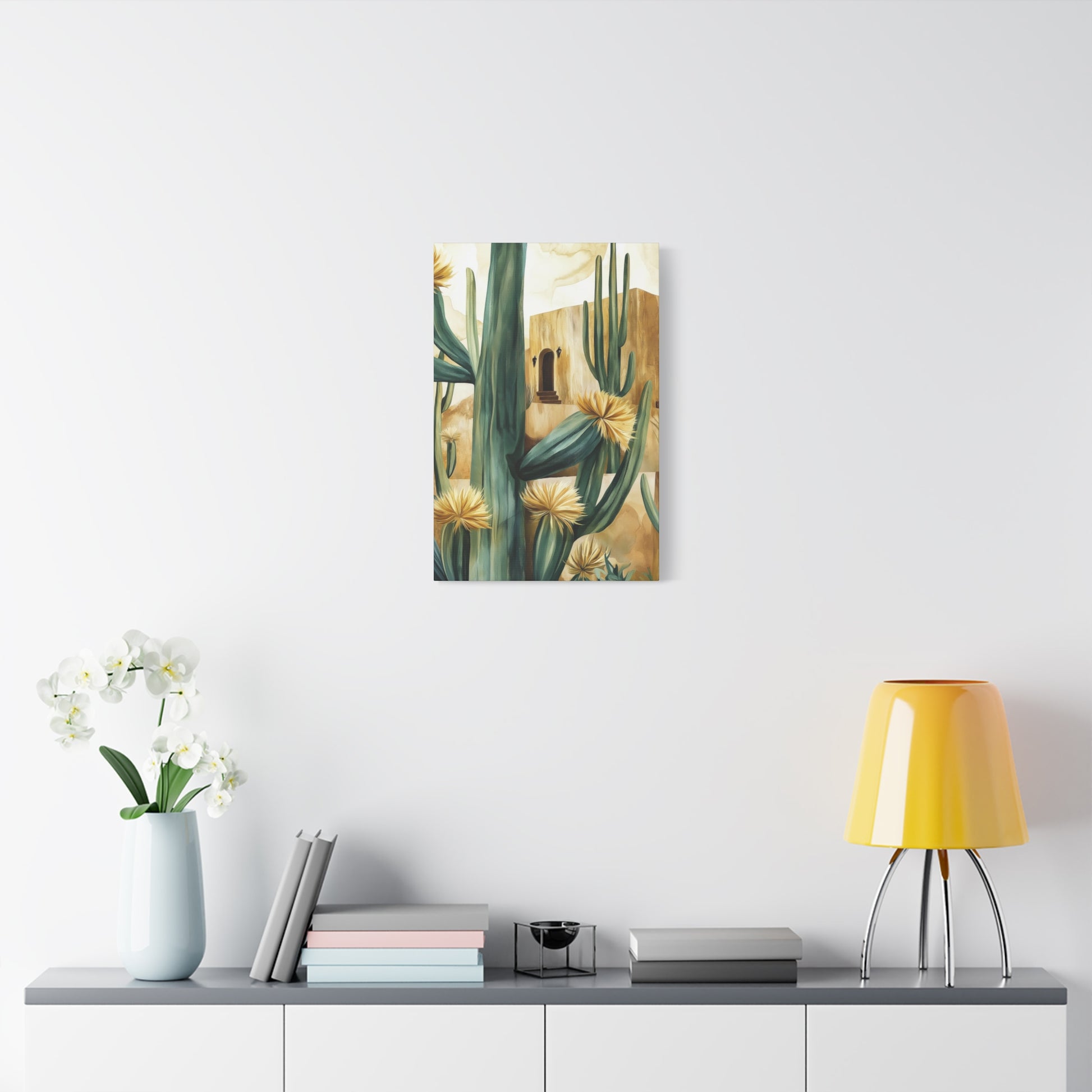 Bring a touch of the Southwest into your home with this stunning canvas print featuring a desert church surrounded by towering cacti. Perfect for those who love desert landscapes and nature-inspired decor. Ideal for adding a pop of color and warmth to your living space or office. Great for Southwestern-themed home decor, desert enthusiasts, and those who appreciate nature-inspired art. Perfect for decorating your space for holidays like Thanksgiving or occasions like housewarmings.