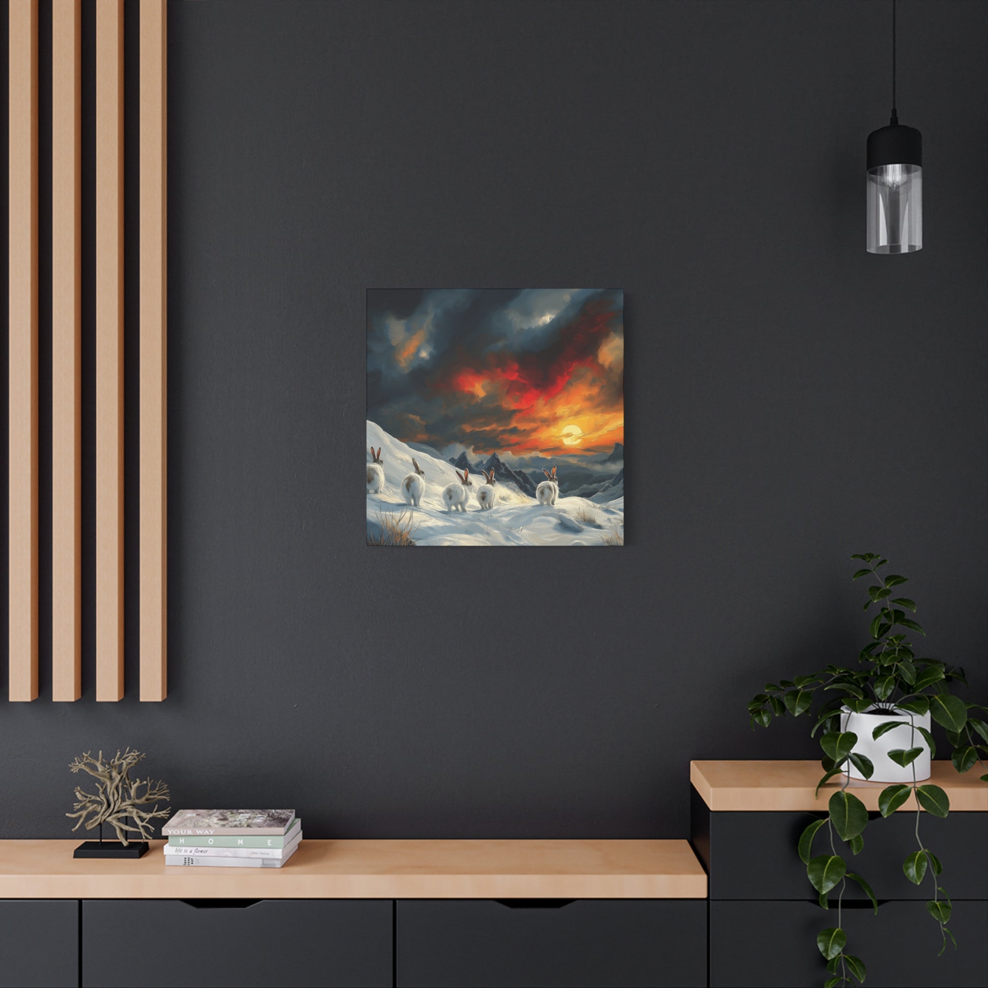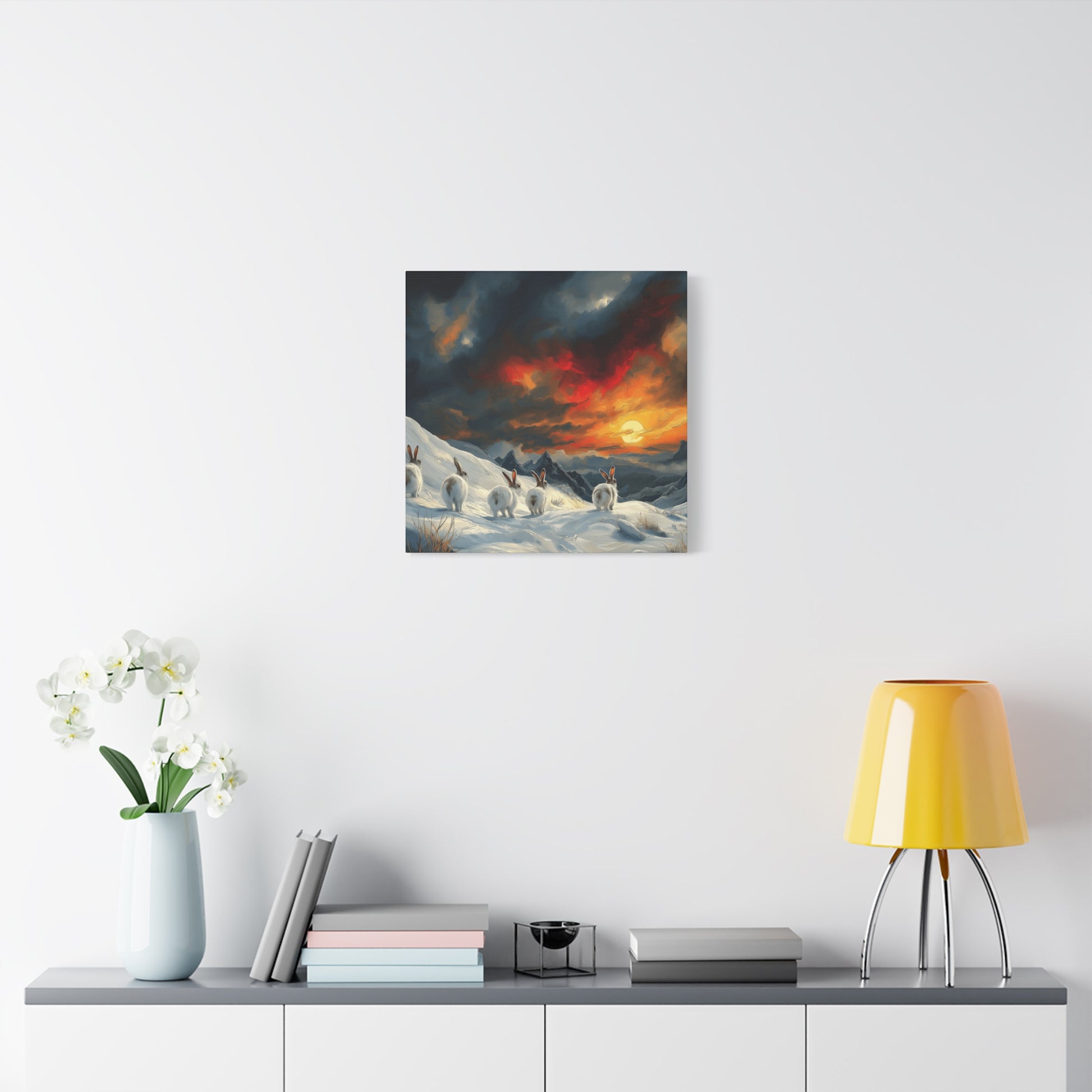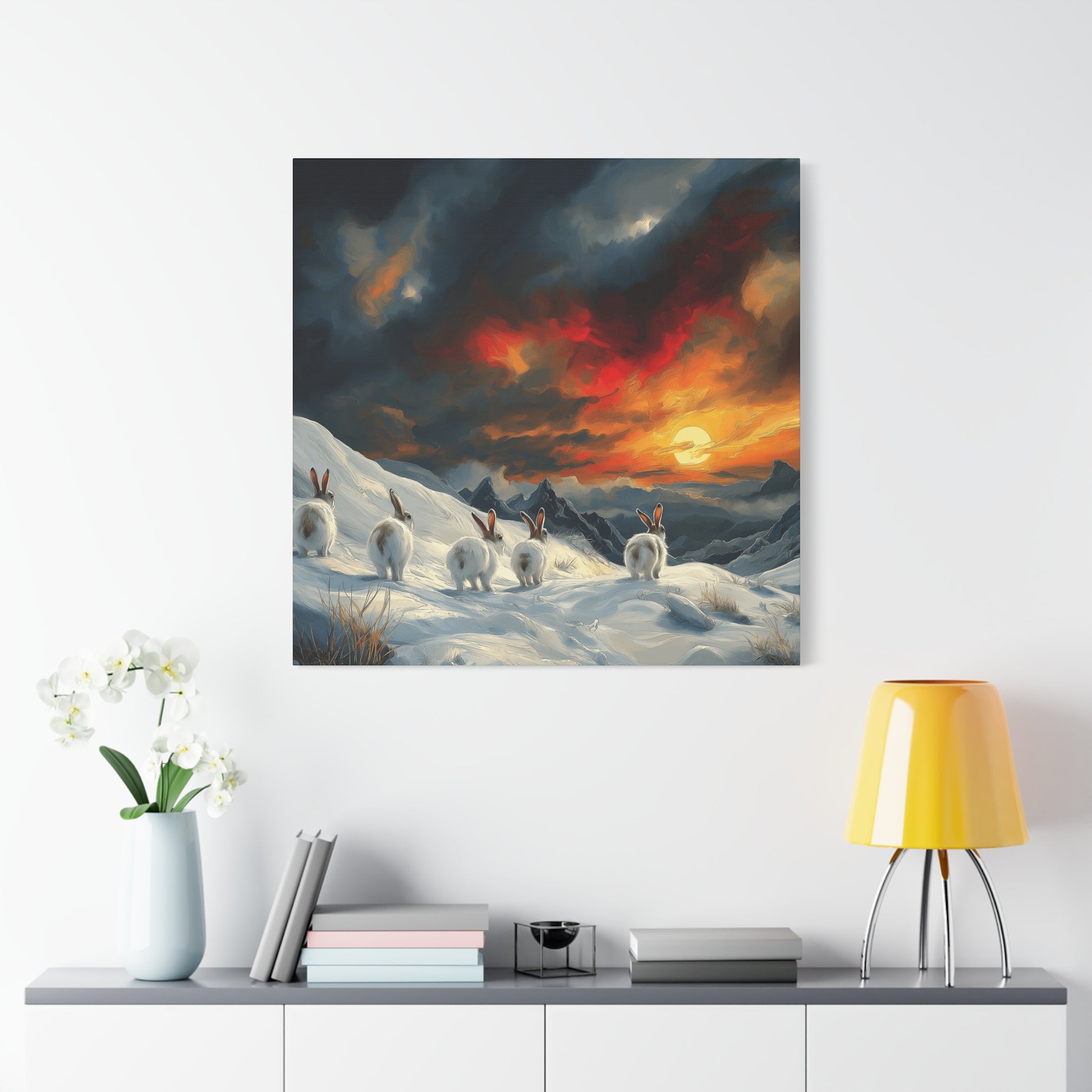 Transform your living space with this stunning Matte Canvas. Featuring a breathtaking sunset over a snowy landscape where adorable rabbits frolic, this piece brings warmth and serenity to any room. Imagine this beautiful canvas hanging in your home, evoking feelings of calm and connection to nature. Perfect for animal lovers, art enthusiasts, or anyone looking to add a touch of whimsy to their decor. Ideal for gifting during holidays, housewarmings, or celebrations like Easter and springtime gatherings, this canvas is sure to inspire joy and appreciation. Make your space feel like a cozy sanctuary with a piece that speaks to your love for wildlife and the great outdoors.