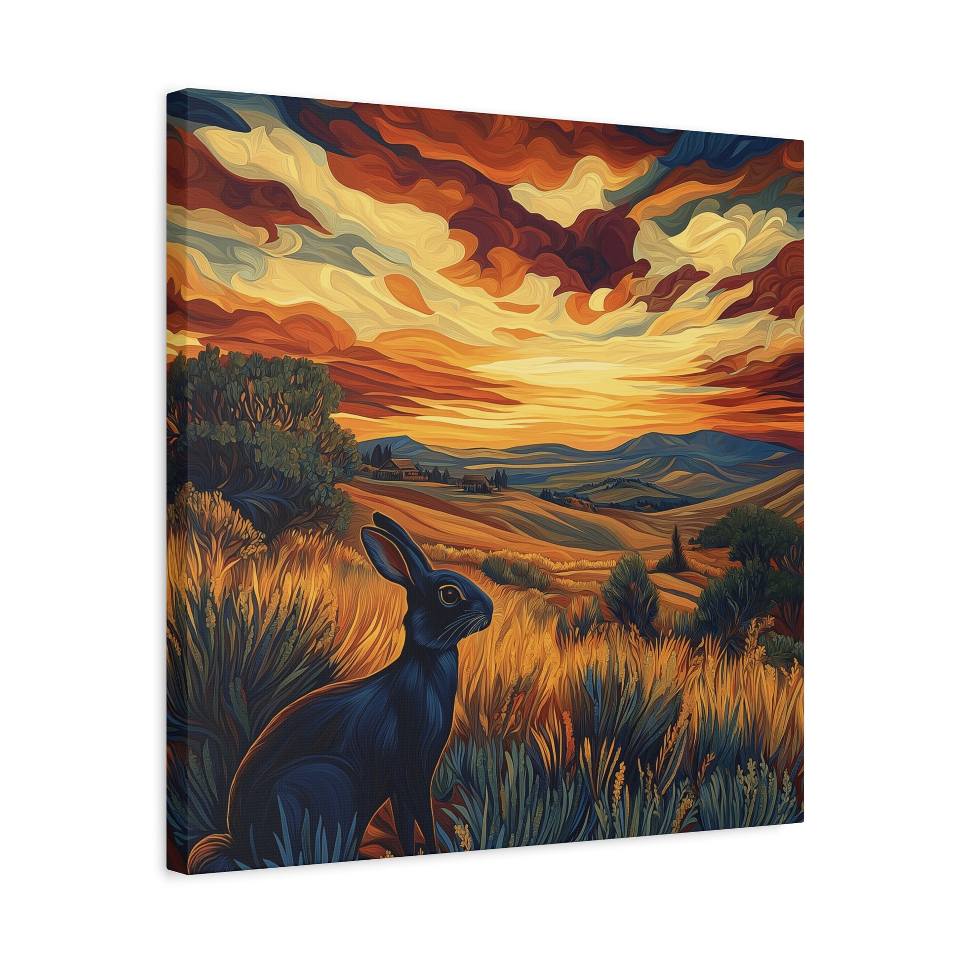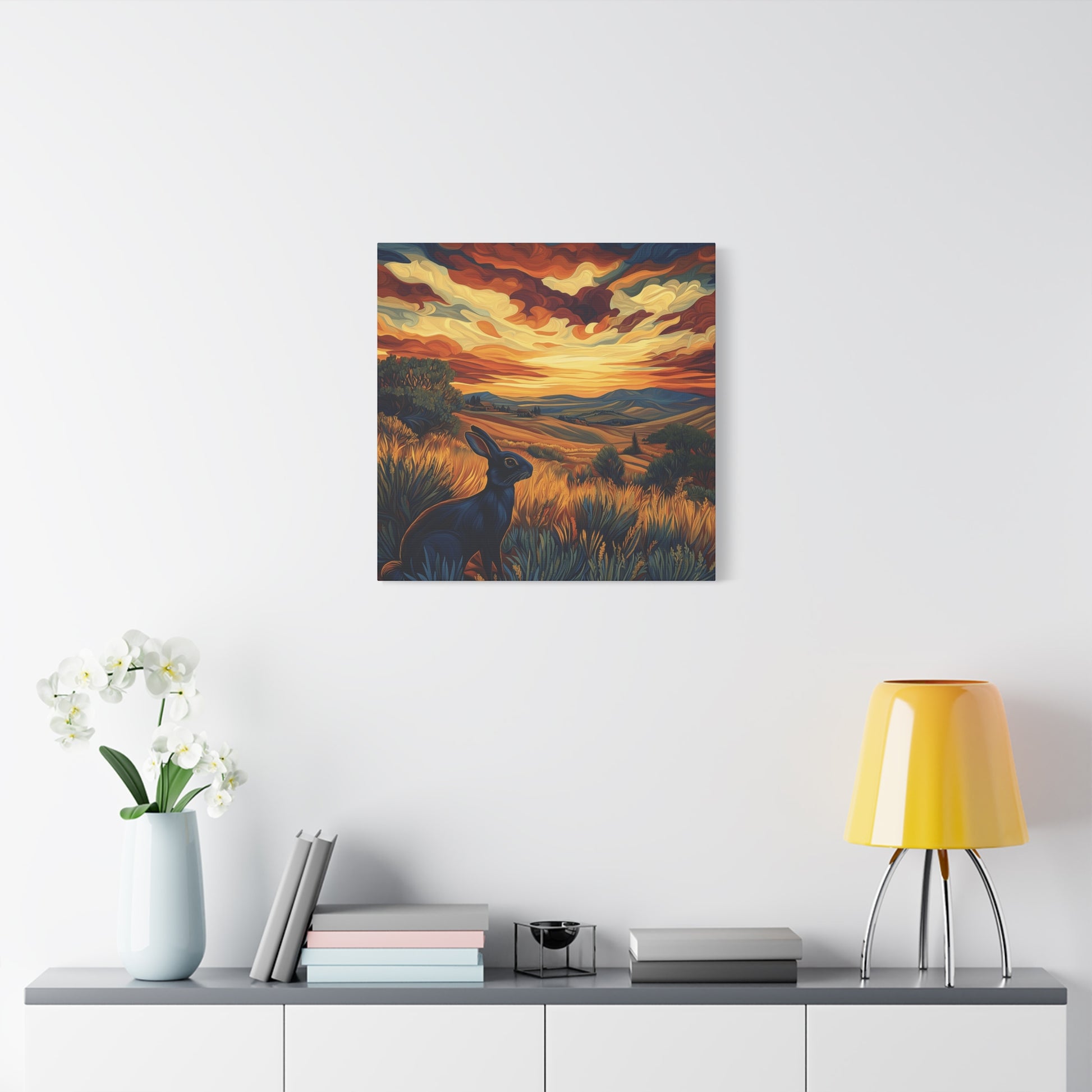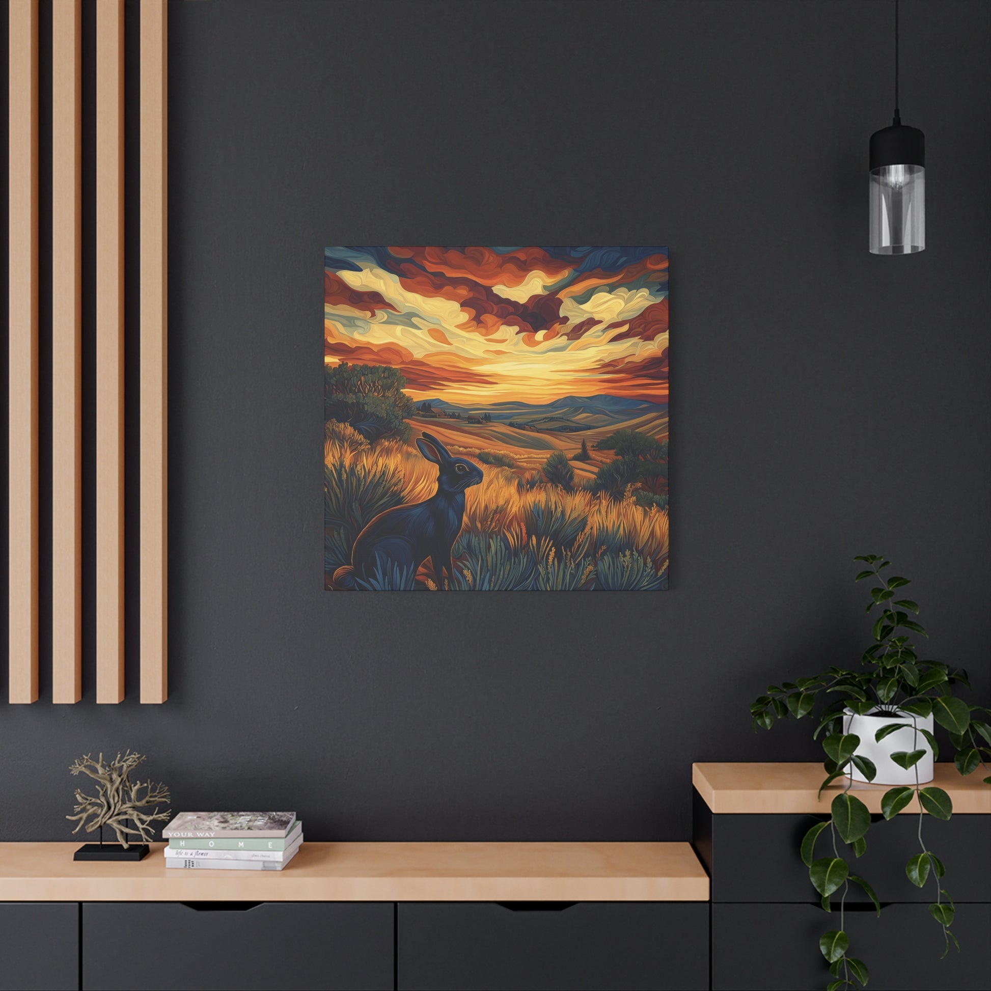 Serene Landscape Canvas Art - Black Rabbit at Sunset